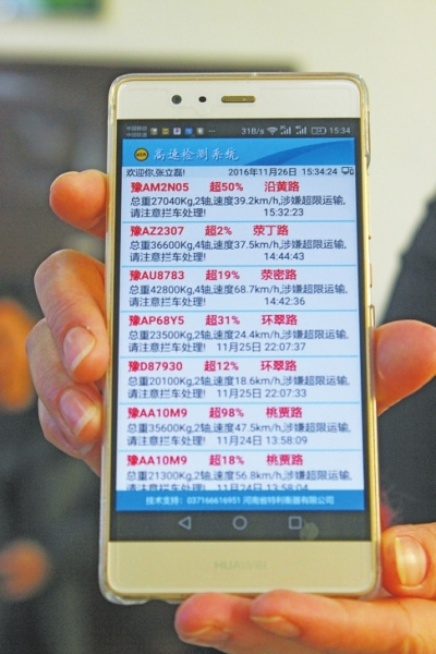 超載信息通過監控裝置實時傳輸到值勤交警的手機中。