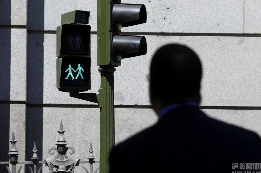 西班牙現同性戀紅綠燈 同性伴侶牽手過街